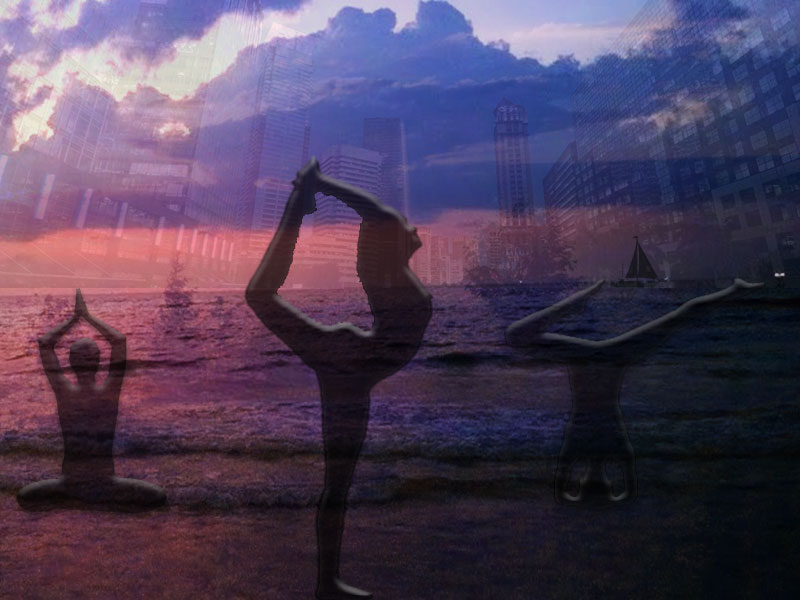 I really wanted to incorporate yoga into my design so that my whole blog had the feel of yoga! I played with a couple different backgrounds and images of people doing yoga but nothing exactly looked right. Then I had the idea that free form yoga is versatile and can really be done anywhere! Including the city, on the beach, and in the grass!
