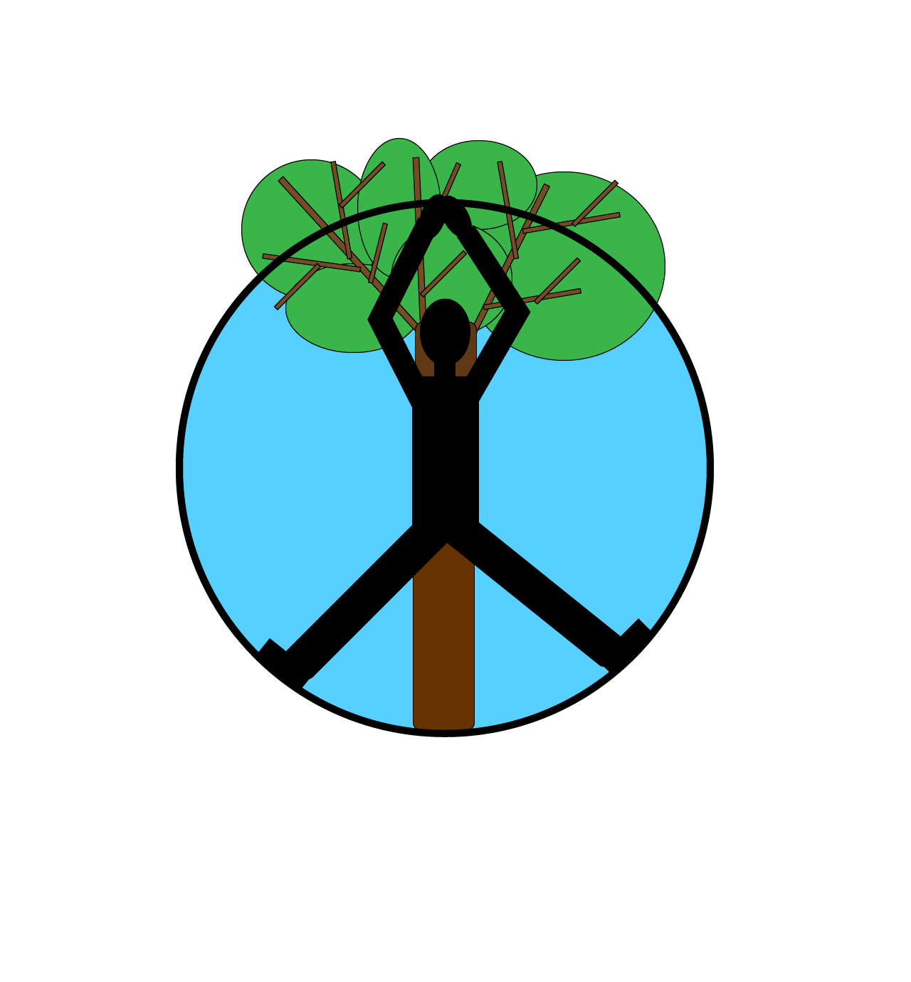 I first sketched out my draft on paper using multiple different yoga poses to best create a peace sign. I also traced a circle out of a kitchen bowl that I had. The next step was drawing the tree to make it look like it was behind the person and that was about it. I then took my idea into illustrator and used the shape tool for everything I drew. I then moved, arranged, and rotated the shapes to create a person, a peace sign and a tree.